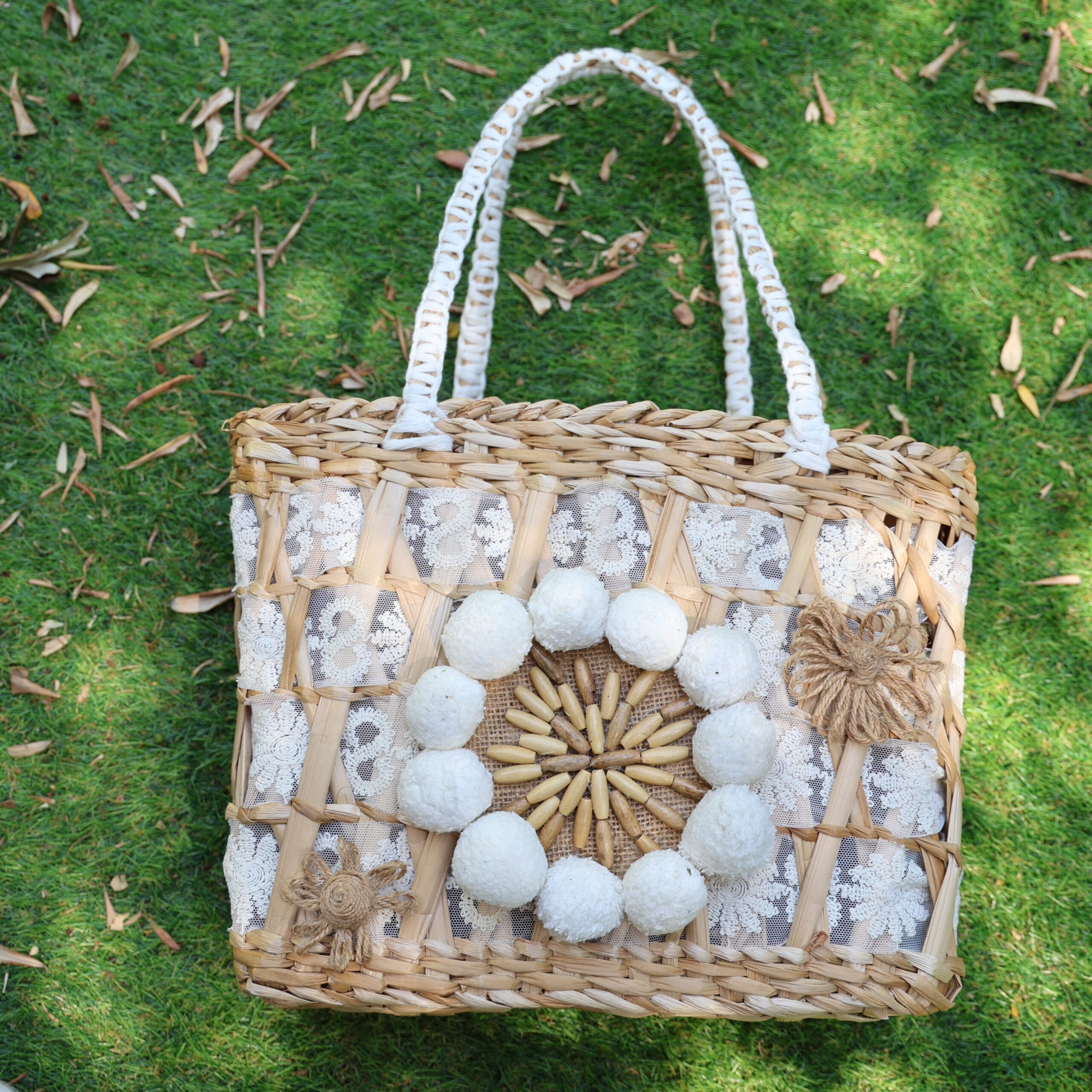 Doğal saz dan elde örülerek üretilmiş ,dekorlanmış ve  içi astarlanmış   plaj çantası